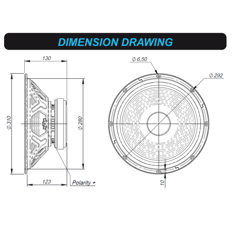 Baffle cutout diameter: - Front mount 280 mm 11.0 in
